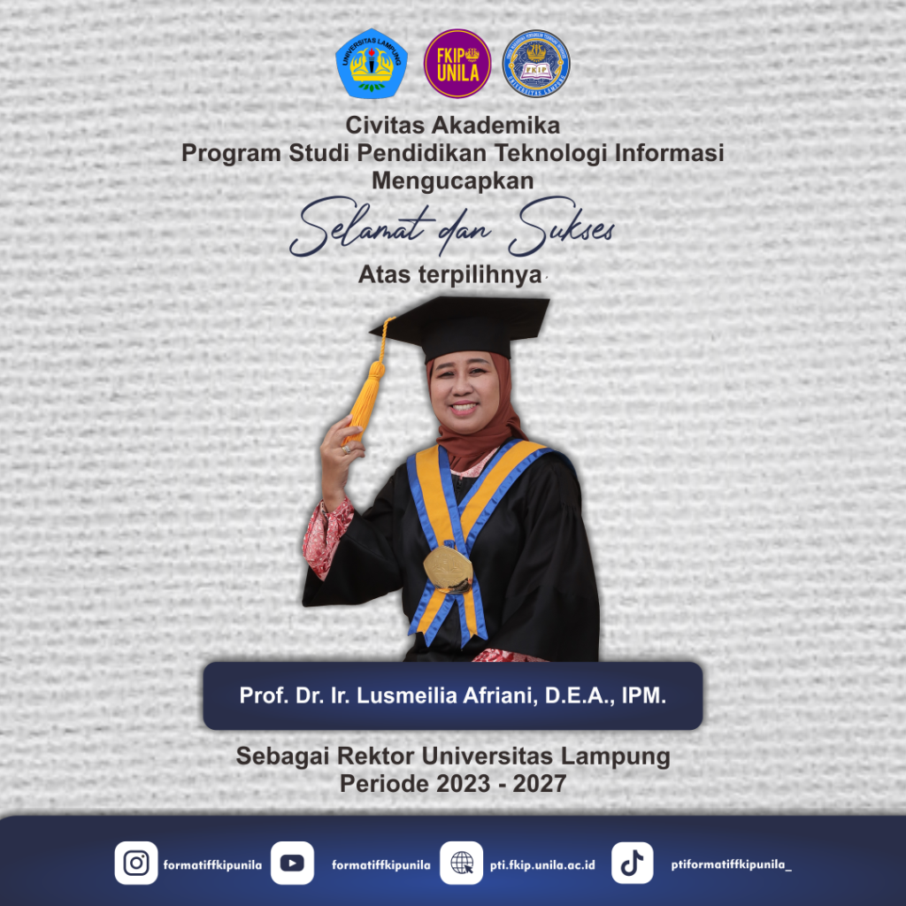 Selamat Atas Amanah Baru Sebagai Rektor Terpilih Universitas Lampung Periode 2023 – 2027 Prof. Dr. Ir. Lusmeilia Afriani, D.E.A., IPM.